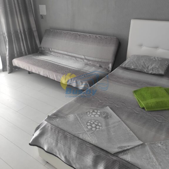 4-х местный 2-х комнатный: душ, туалет, кондиционер, телевизор, холодильник. С кухней. С выходом на террасу, которая укомплектована летней мебелью. Возможность размещения доп места.