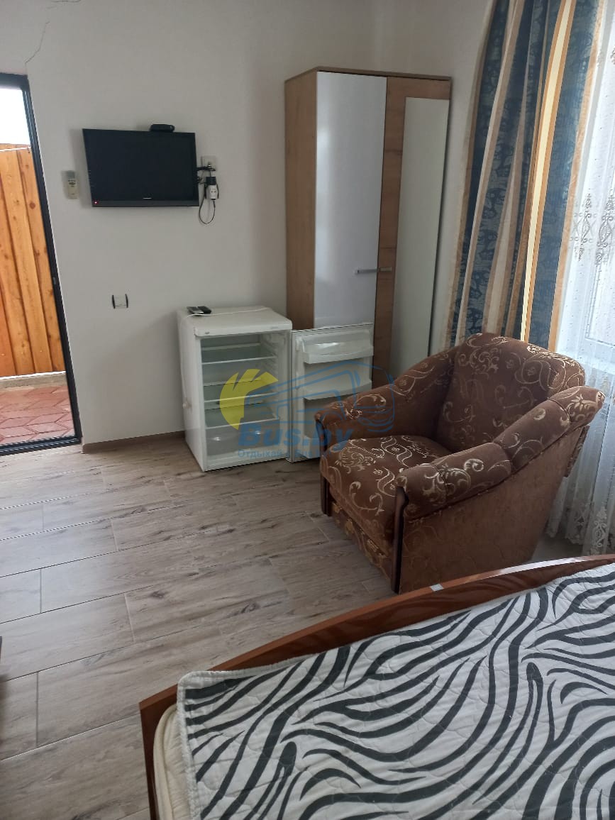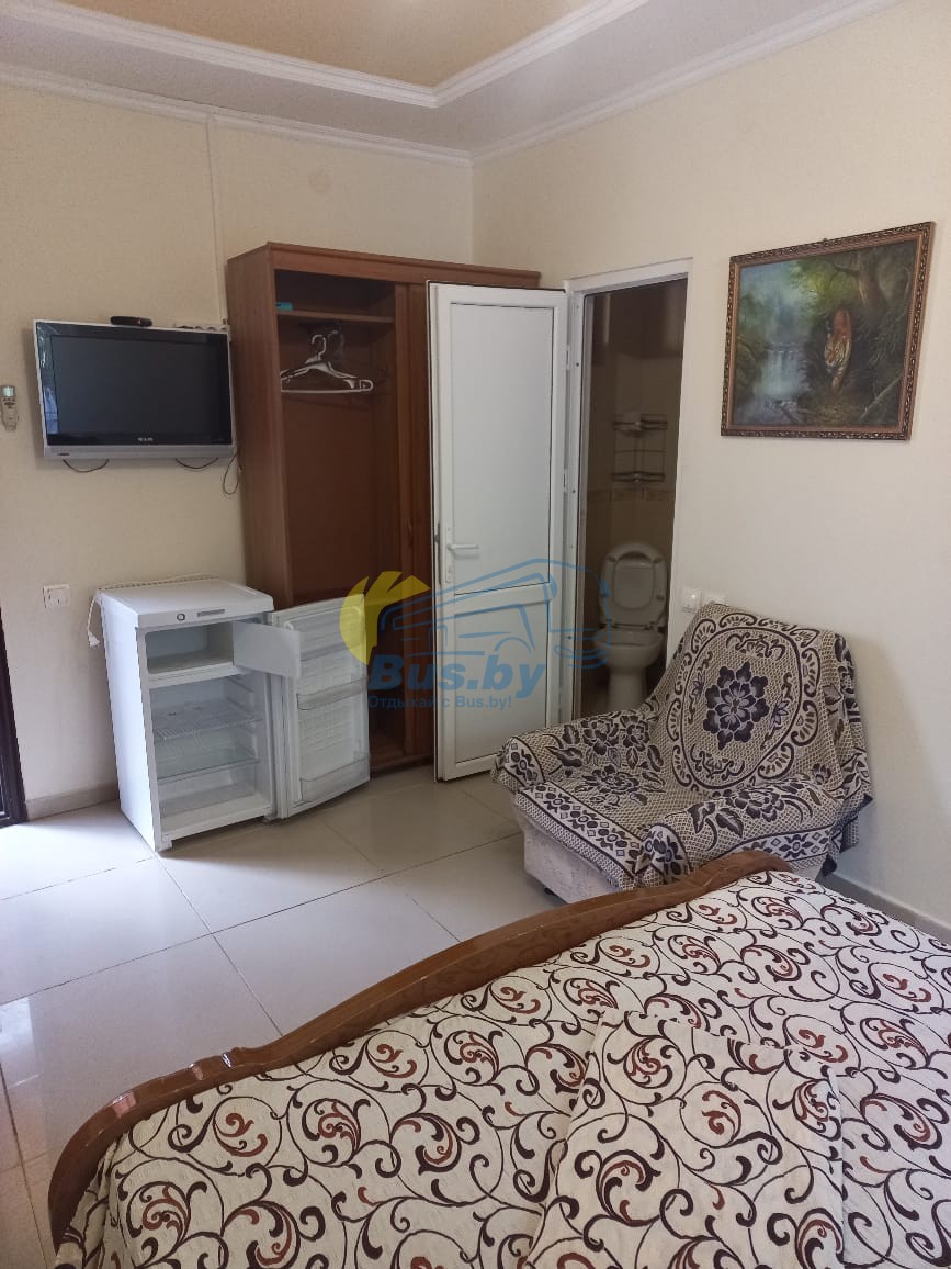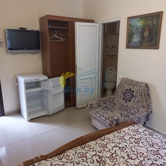 Каждая комната оборудована всем необходимым для вашего удобства: душ, туалет, кондиционер, холодильник, телевизор. Напротив каждого номера летняя мебель для отдыха. Все номера на 1 этаже