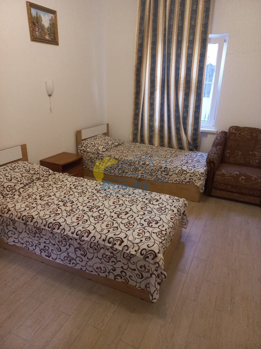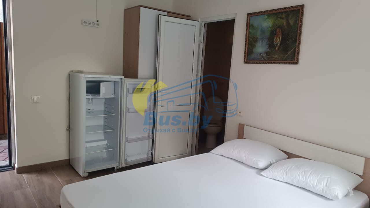 Каждая комната оборудована всем необходимым для вашего удобства: душ, туалет, кондиционер, холодильник, телевизор. Напротив каждого номера летняя мебель для отдыха. Все номера на 1 этаже