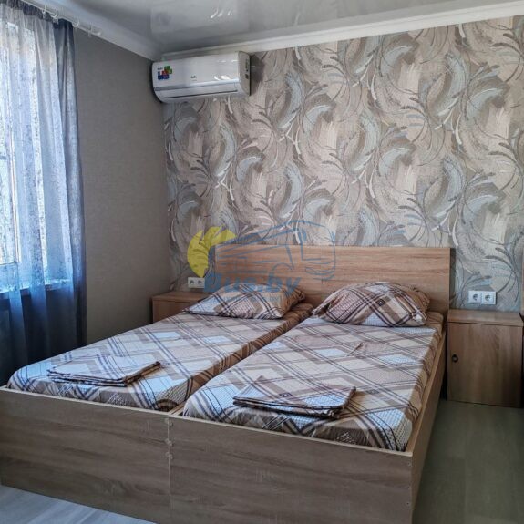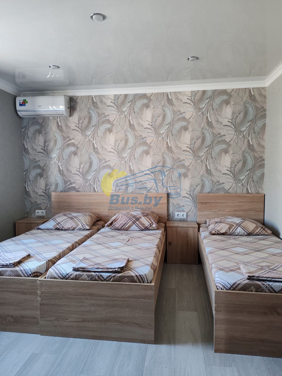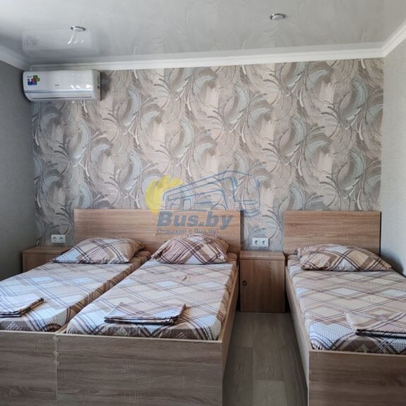 3-х местный номер: 2-х спальная кровать и односпальная. Санузел в номере. Кондиционер, телевизор в номере, холодильник на кухне.