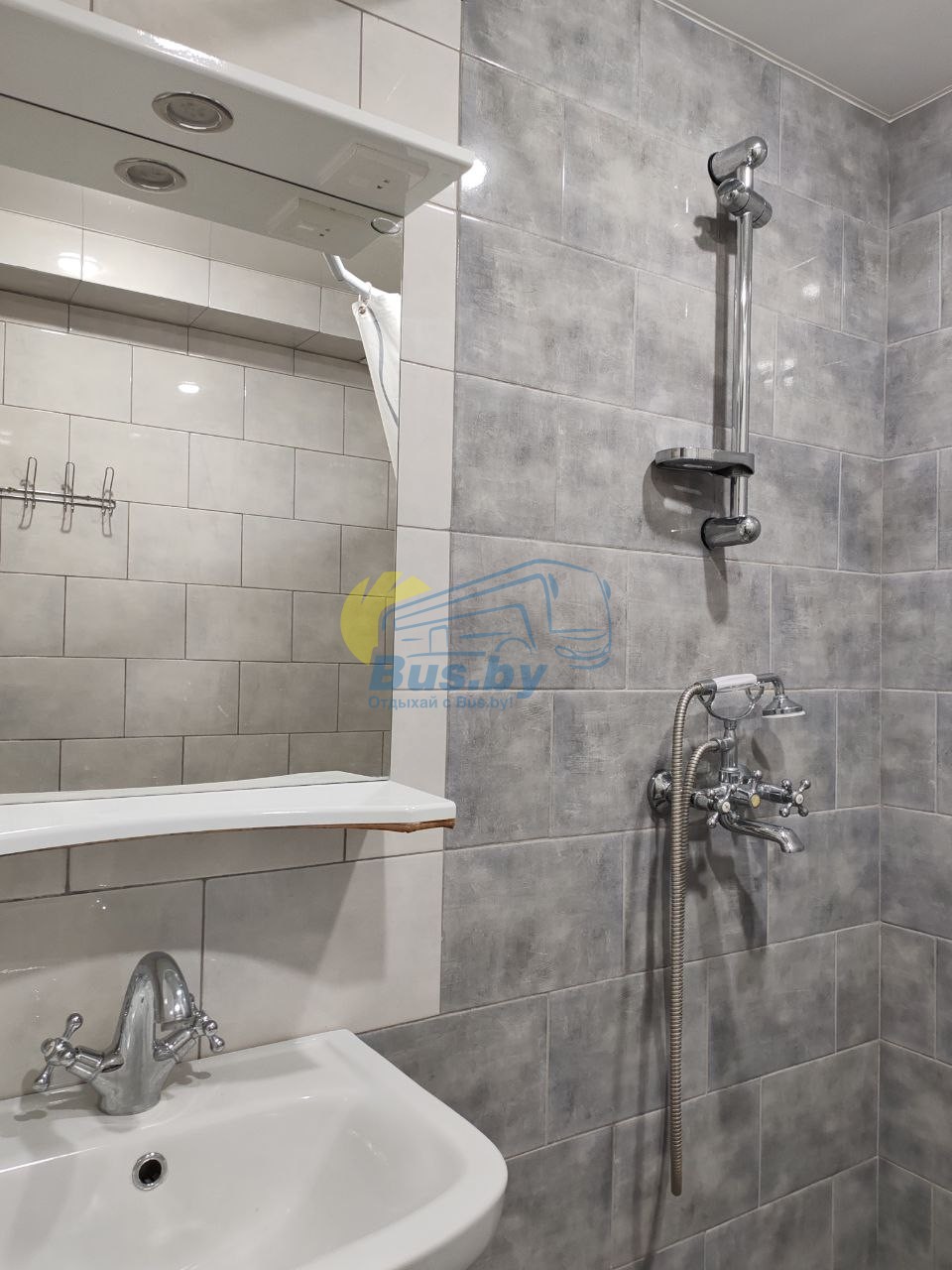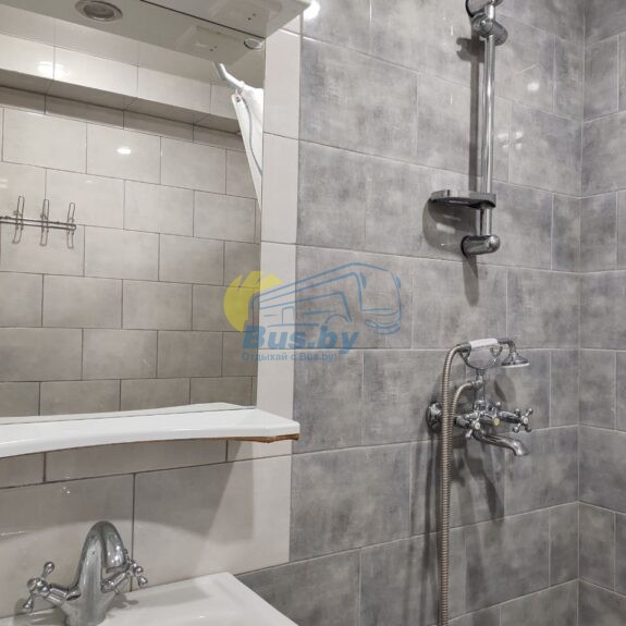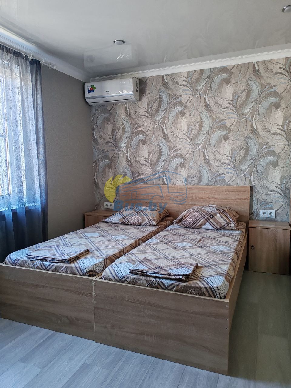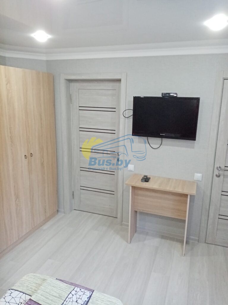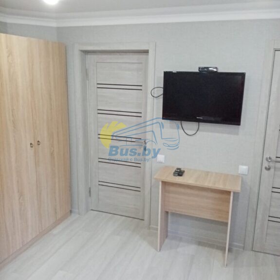4-х местный номер: 2-х спальная кровать и две односпальные. Санузел в номере. Кондиционер, телевизор в номере, холодильник собственный на кухне.