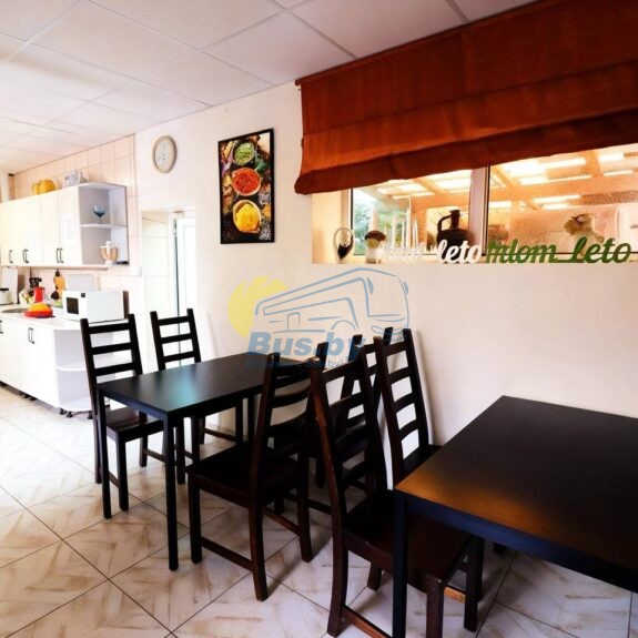 • Общая кухня — с техникой (блендер, тостер, плита, микроволновка) и всей необходимой посудой.