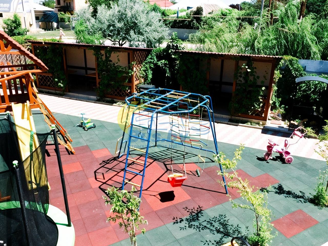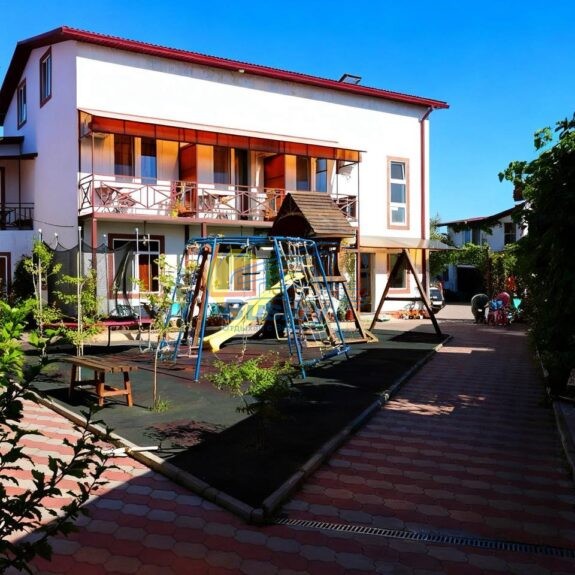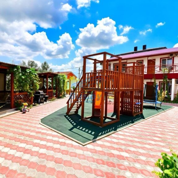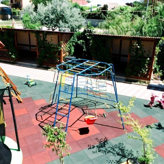 • Детская площадка — горки, качели, домики, батут и детские велосипеды для малышей.
