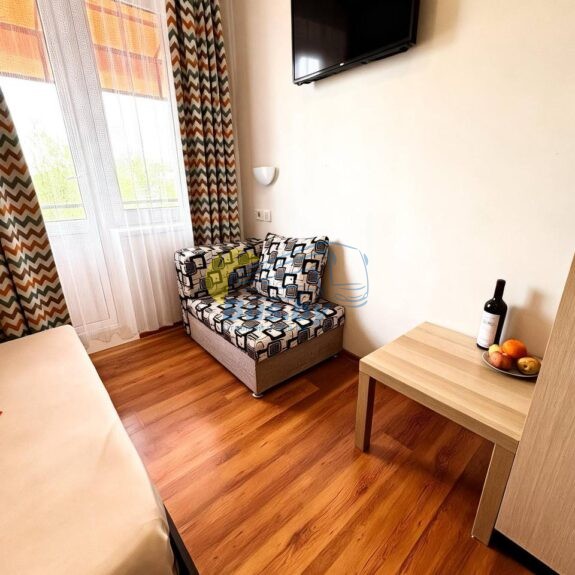 1-но местный: раскладывающийся диван с ровной поверхностью, душ, туалет , сплит-система, холодильник и телевизор.