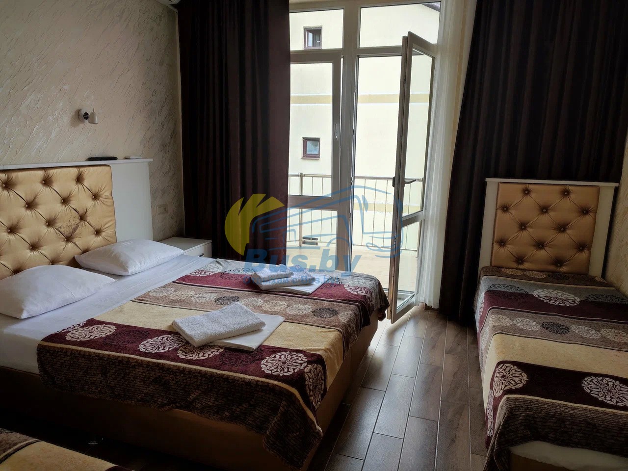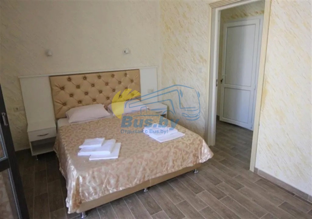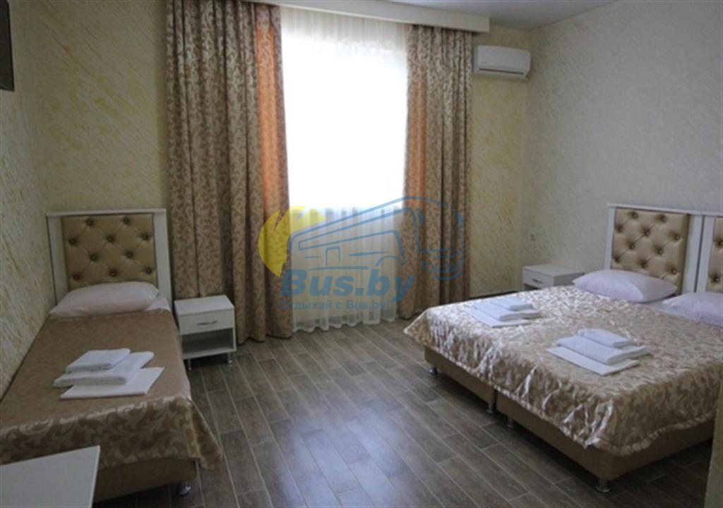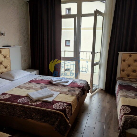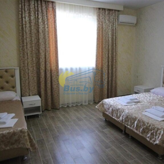 5-ти местный двухкомнатный номер: душ, туалет, кондиционер, телевизор, холодильник. Две 2-х спальные кровати и односпальная кровать. Балкон.