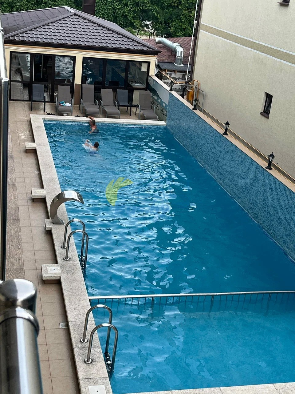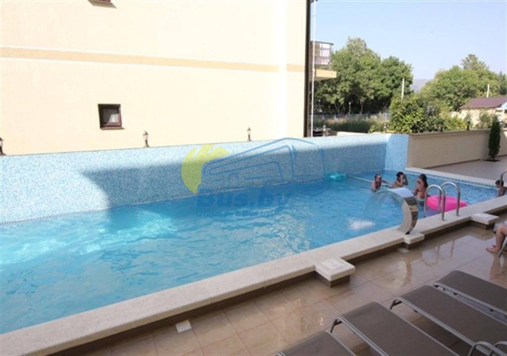 Территория отеля оборудована зоной барбекю, детской площадкой и местами для отдыха. Есть большой бассейн, с детской и взрослой зоной.