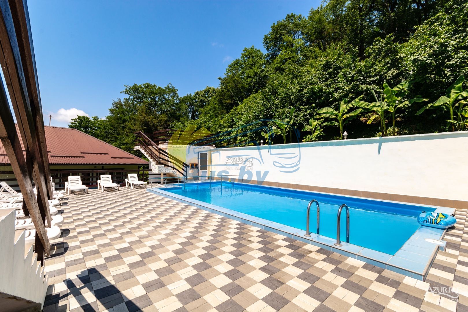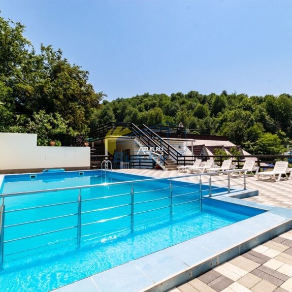 Для тех, кто любит плавать, есть просторный бассейн с подогревом, который доступен круглый год. Дети будут в восторге от современной детской площадки, а любители активного отдыха оценят зону отдыха с мангалом.