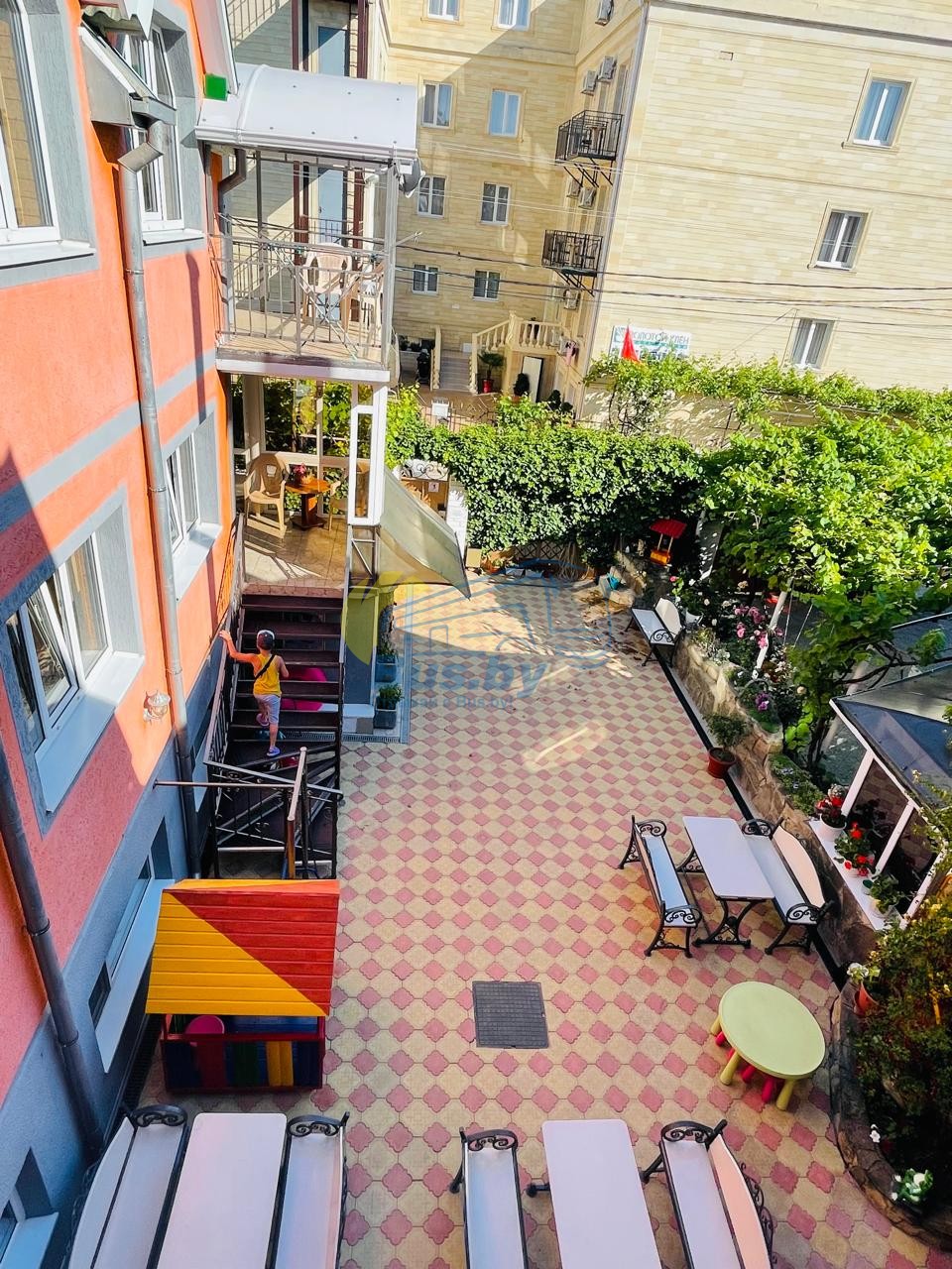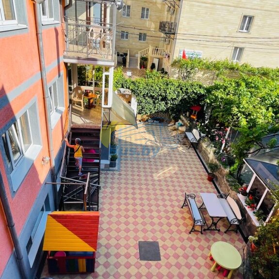 На благоустроенной территории гостевого дома вы найдете все необходимое для отдыха всей семьей. Двор закрыт от посторонних глаз, что обеспечивает безопасность и спокойствие ваших детей. Во дворе имеется замечательная детская площадка, где малыши смогут весело провести время. А взрослые могут насладиться игрой в настольный теннис или отдохнуть в тени виноградной беседки, наслаждаясь прохладным морским бризом. Есть каркасный бассейн.