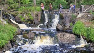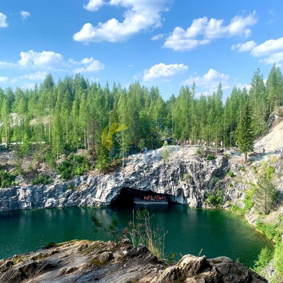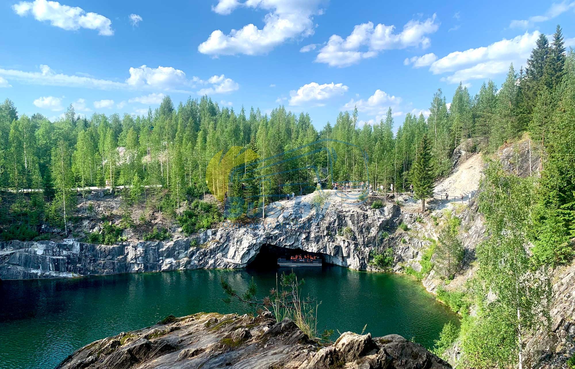Экскурсия в Карелию (по желанию, доплата 3000 руб.) — это насыщенный день, который продлится примерно 16 часов и подарит вам незабываемые впечатления. Во время поездки вы посетите Тохминские водопады — живописное место в Рускеале, где река Тохма разбивается на три мощных водопада высотой около 3-4 метров. Здесь снимался фильм «А зори здесь тихие». Далее вас ждет посещение мраморного каньона Рускеала — уникального природного памятника с прозрачными озерами и отвесными мраморными берегами (входной билет — 650 руб.), где можно неспешно прогуляться по мраморным аллеям и насладиться красотой природы. Также запланировано восхождение на гору Паасонвуори (входной билет — 500 руб.), древнее городище карелов с потрясающим видом на лес и реку Хелюлянйоки. В подарок для участников — дегустация карельских бальзамов в Лахденпохье, где расскажут о составе и свойствах напитков, а также предоставят возможность приобрести понравившиеся сорта.